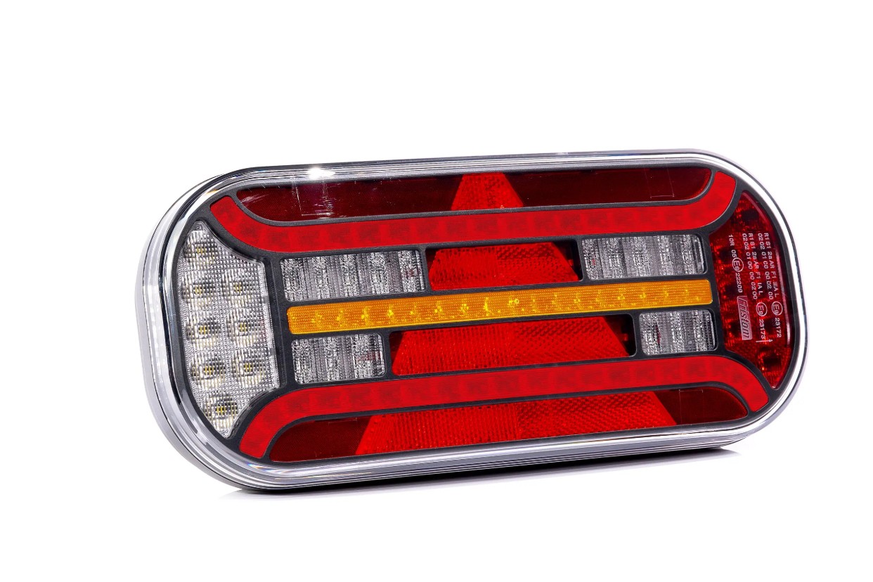 Nume Produs: Lampa spate universala LED dreapta cu triunghi reflectorizant, functii lampa: stop, pozitie, semnalizare, ceata/marsarier, 12V, conector BAIONET 5 PIN