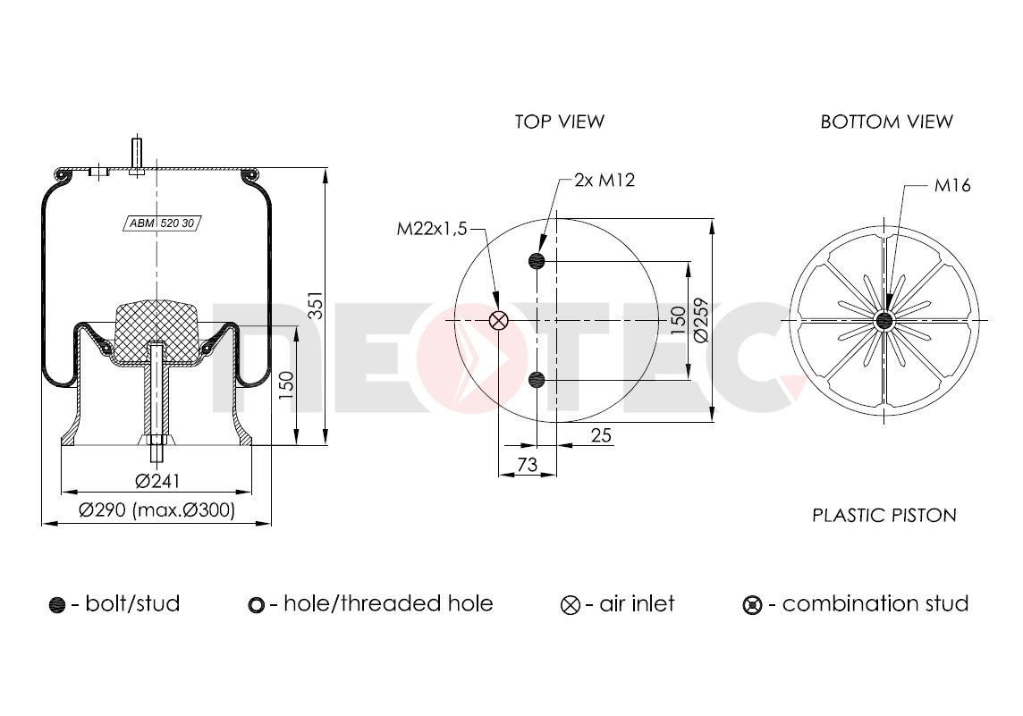 Nume Produs: Perna aer completa cu piston, inaltime piston: H=150 mm